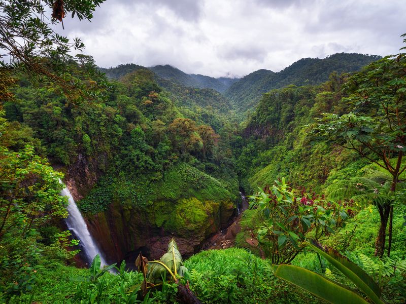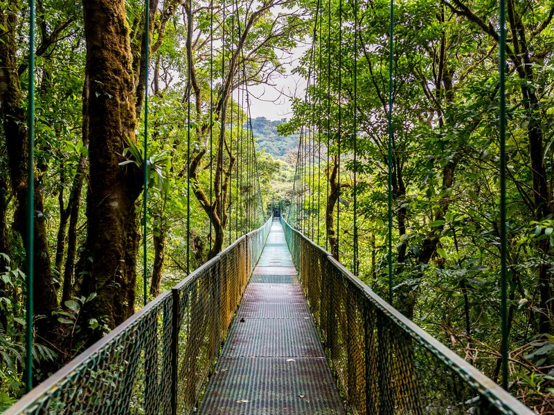 Ce matin, route vers la réserve de Monteverde, à travers une végétation exubérante, où niche le légendaire quetzal resplendissant et de nombreux colibris. Vous pouvez vous arrêter pour profiter de splendides points de vue tout au long du chemin et visiter le Parc National du Volcan Arenal et tenter la tyrolienne ainsi que les ponts suspendus. Continuation vers les splendides et légendaires forêts nuageuses, dans la cordillère de Tilaràn.