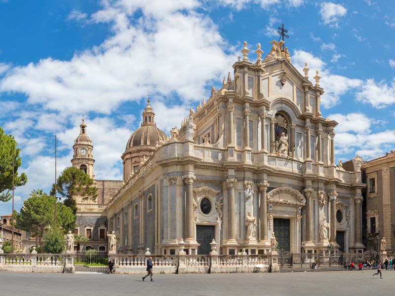 Arrêt à Catane, l'une des lus anciennes villes de Sicile fondée par les grecs au VIIIe sicle avant J.C. Après les églises baroque, la cathédrale, le château et le quartier historique, continuation vers Taormine, une ancienne cité grecque devenue aujourd'hui une belle station touristique.