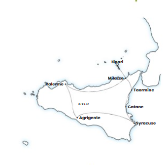 Arrêt à Messine et son détroit gardé par les mythiques Charybde et Scylla avant Milazzo d'où vous embarquez pour Lipari et les îles Eoliennes, petit archipel bordé par la mer Tyrrhénienne, classé pas l'UNESCO