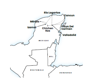 Le transport aérien France / Cancun a/r - Les taxes de séjour environnementales sur la Riviera Maya - Les visites et excursions suggérées au programme - L’assurance rachat de franchise pour la location du véhicule - Les frais d’essence, de parking et de péage - Les assurances.