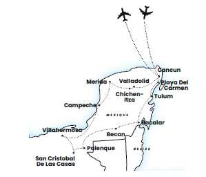 Le transport aérien Le transport aérien France / Cancun A/R - Le supplément hôtel de catégorie supérieure : 515€ (à ce jour) - La taxe environnementale de Cancun : 28MXN par chambre et par nuit à régler sur place, sujette à évolution - La taxe environnementale de la Riviera Maya : 20 MXN par chambre et par nuit à régler sur place à Playa Del Carmen, sujette à évolution - Les visites et excursions suggérées - Les frais liés à la location du véhicule (carburant, parking, péages, GPS, conducteur additionnel…) - Les assurances.
