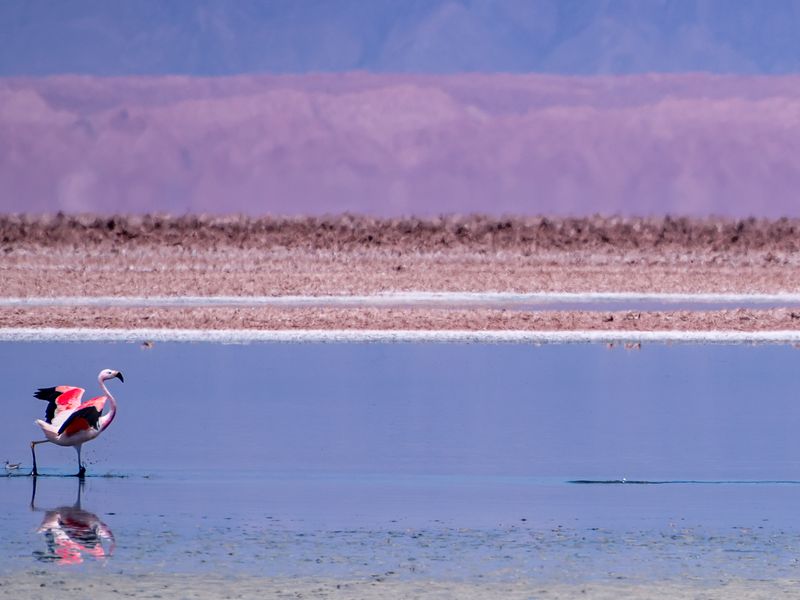 Découverte du célèbre Salar de Atacama ! Observation des flamants roses dans le Parc national Los Flamencos à la lagune Chaxa au milieu du Salar. Vous poursuivez avec les splendides lagunes altiplaniques de Miscanti et Miñiques. Visite du village de Toconao