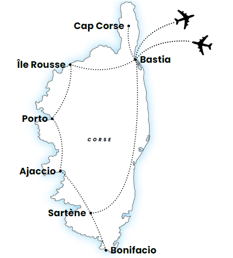 - Le transport aérien sur vols réguliers France / Bastia / France sur vols spéciaux ou réguliers (vols avec escale et changement d'appareil)