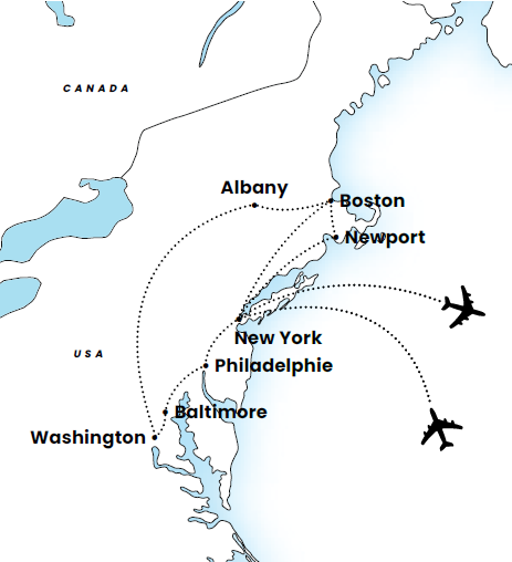 - Les grandes villes de l’Est : Washington, Philadelphie, New York et Boston