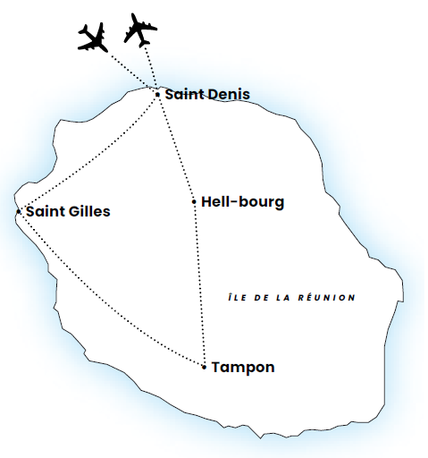 - Le transport aérien Paris / St Denis / Paris sur la compagnie régulière Air Austral, en classe économique, bagage en soute inclus
