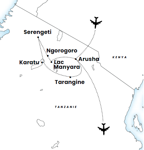 - 4 parcs nationaux : Manyara, Serengeti, Ngorongoro et Tarangire