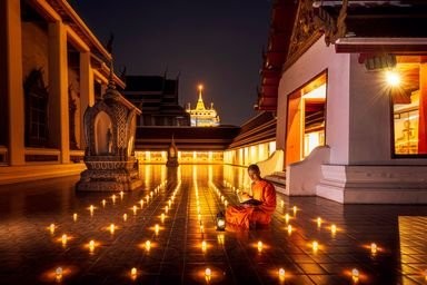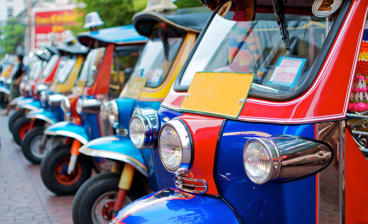 C’est en train aérien que vous ralliez le fleuve Chao Praya que vous remontez ensuite en ferry local. Découverte du marché aux fleurs, des petites ruelles typiques… Cet après-midi, transfert en tuk tuk jsuqu’à la grande place. Visite du Grand Palais, du Wat Phra Keo et son Bouddha d’Emeraude. L’aventure continue ensuite en trottinettes électriques dans le vieux Bangkok