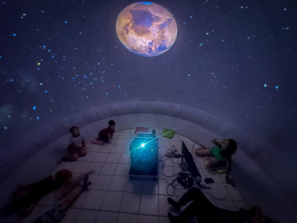 La première séance se déroule dans une géode gonflable immersive, qui transporte les enfants au coeur de l'univers. Ils y découvrent les constellations et apprennent à lire le ciel comme de véritables astronomes. Une expérience sensorielle qui émerveille tout en introduisant les bases de l'astronomie.