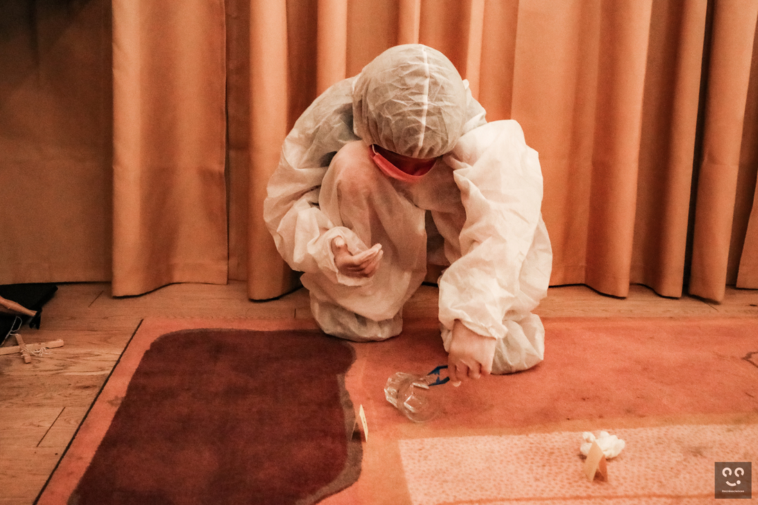 Exploration d'une salle où un crime a eu lieu, avec pour mission de protéger les lieux, examiner chaque détail et collecter les indices.