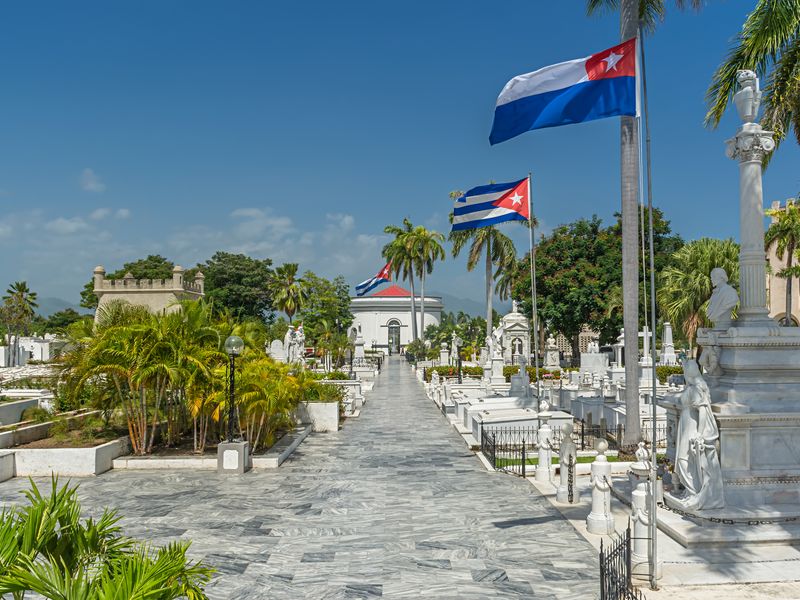 Tour de ville de Santiago, la 2ème ville du pays. Découverte des nouveaux quartiers : la statue Antonio Maceo, la place de la Révolution, arrêt à la caserne Moncada et visite du célèbre cimetière Sainte Iphigénie. Découverte de la forteresse del Morro, avant la traversée en bateau pour l'îlet Granma. Visite du quartier colonial autour du parc Céspedes, la maison classée de Diego Velázquez, promenade autour de la « plaza Dolores »...
