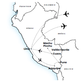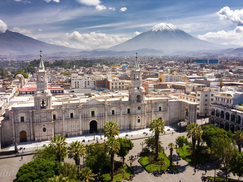 Découverte de Lima en service privé avec guide francophone : Visite de Lima Moderne, avec ses quartiers de Miraflores et San Isidro. Continuation vers le centre historique avec sa magnifique architecture coloniale, classé par l’UNESCO : la Place d’Armes, la Cathédrale (extérieur), Plaza San Martin, couvent de San Francisco (intérieur)… Après-midi, transfert à l’aéroport et envol vers Arequipa. Accueil et transfert à l’hôtel.