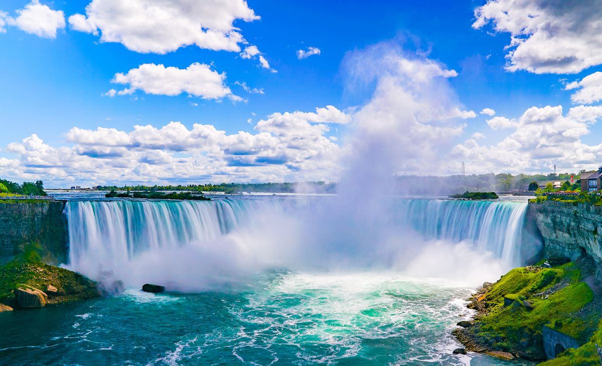 Tour panoramique de Toronto : la Tour CN, la Cathédrale St Michael, le City Hall, les gratte-ciel du quartier financier… avant de rallier les gigantesques chutes du Niagara via Niagara-on-the-Lake, un village pittoresque du XVIIème siècle. Cet après-midi, excursion en bateau jusqu’au pied des fabuleuses chutes. En option : Survol des chutes en hélicoptère : 180 CAD (1).