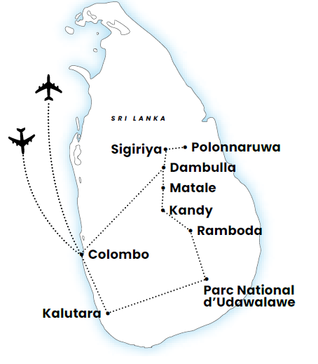 Matinée libre, puis départ vers Colombo pour un tour panoramique du quartier animé de Pettah et du centre historique en bord de mer. Selon vos horaires de vol, transfert à l’aéroport et envol vers la France, où vous arrivez le lendemain.